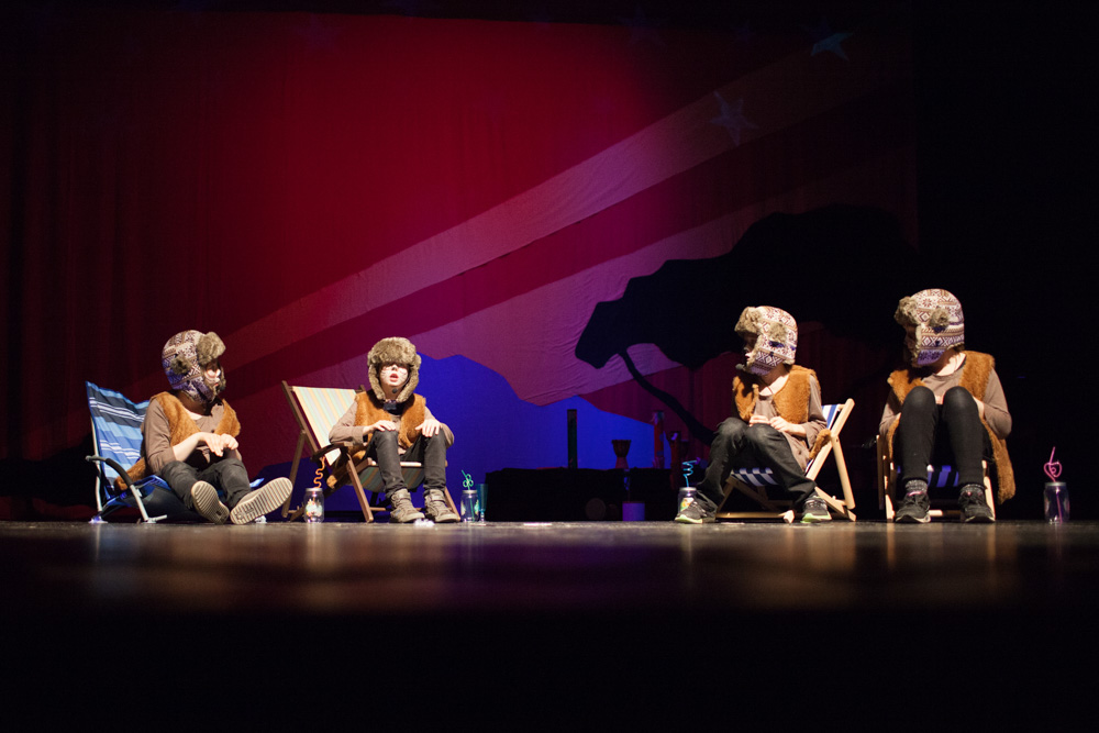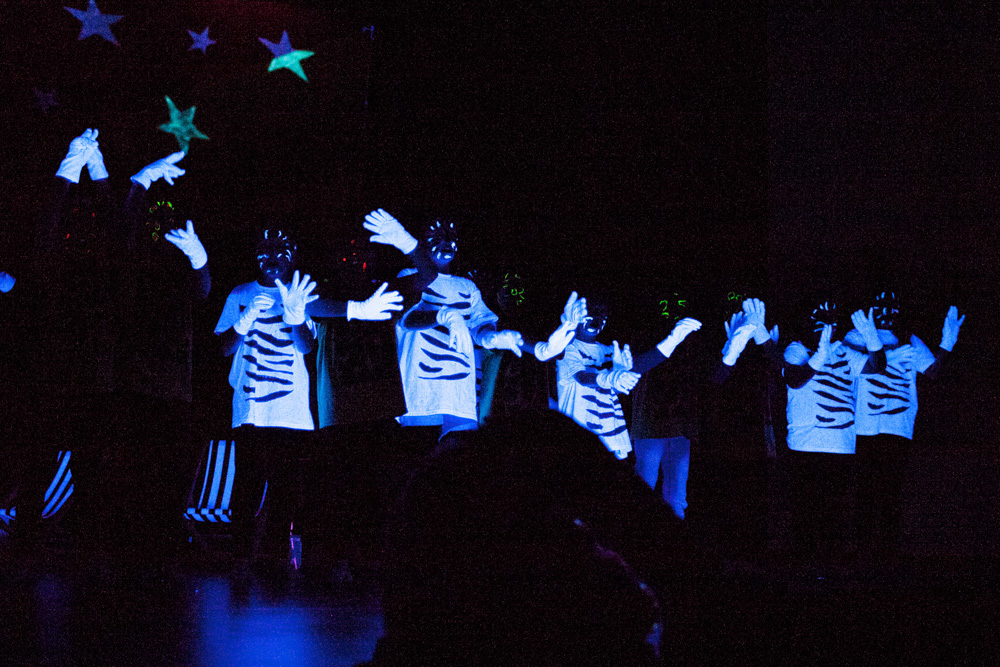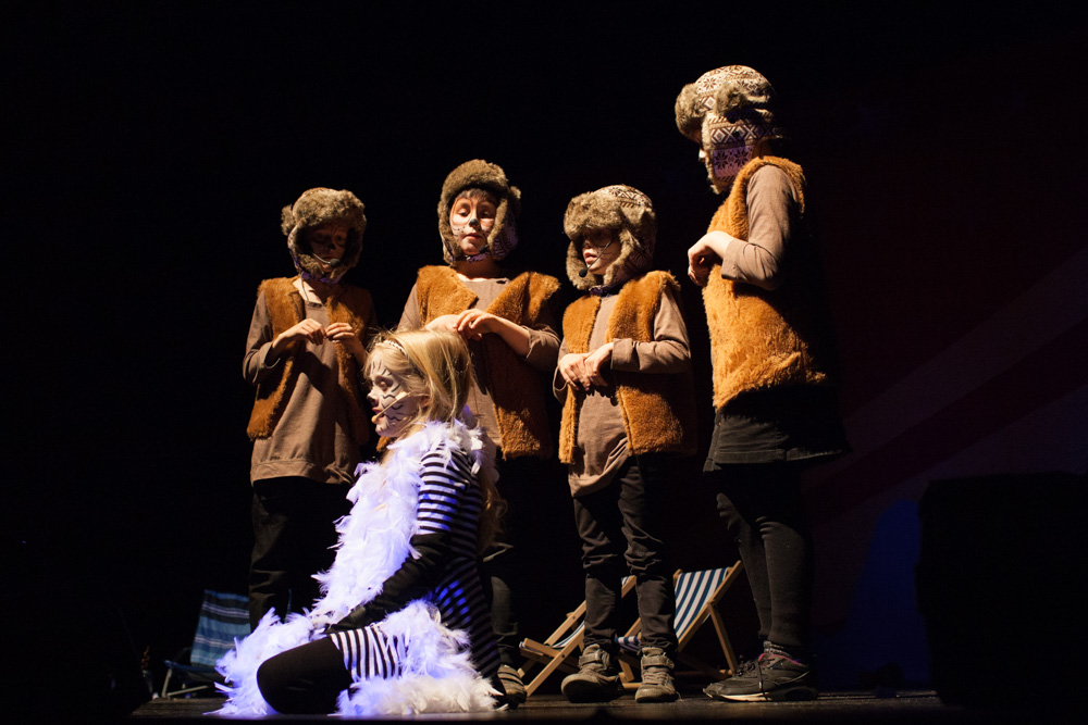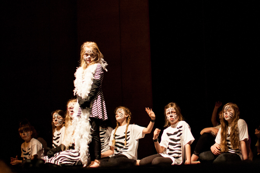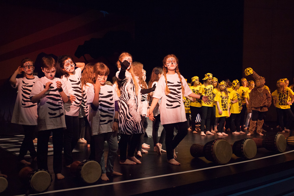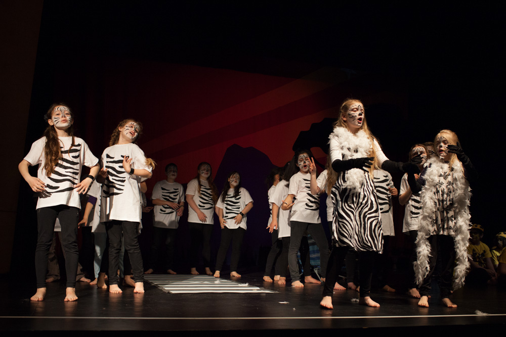 Mehr als 450 Zuschauer warten im Konzert- und Theatersaal und sind gespannt auf unser Musical. Alle „Tiere“ haben sich auf und vor der Bühne aufgestellt und beginnen mit dem „Lied von der Freundschaft“.