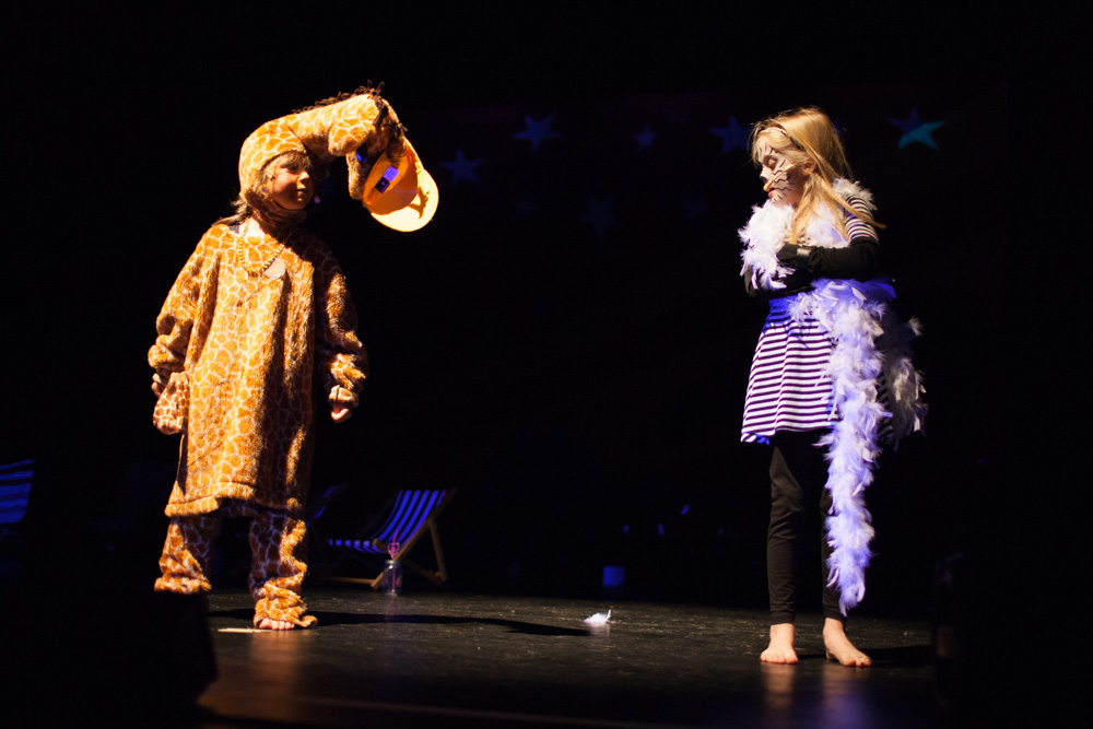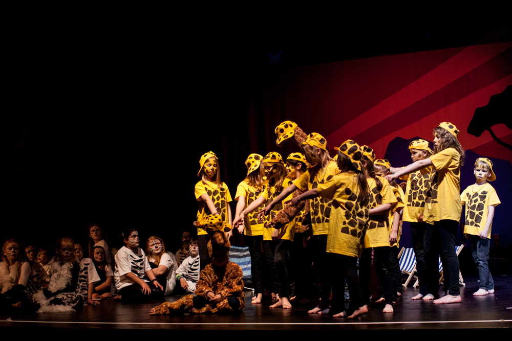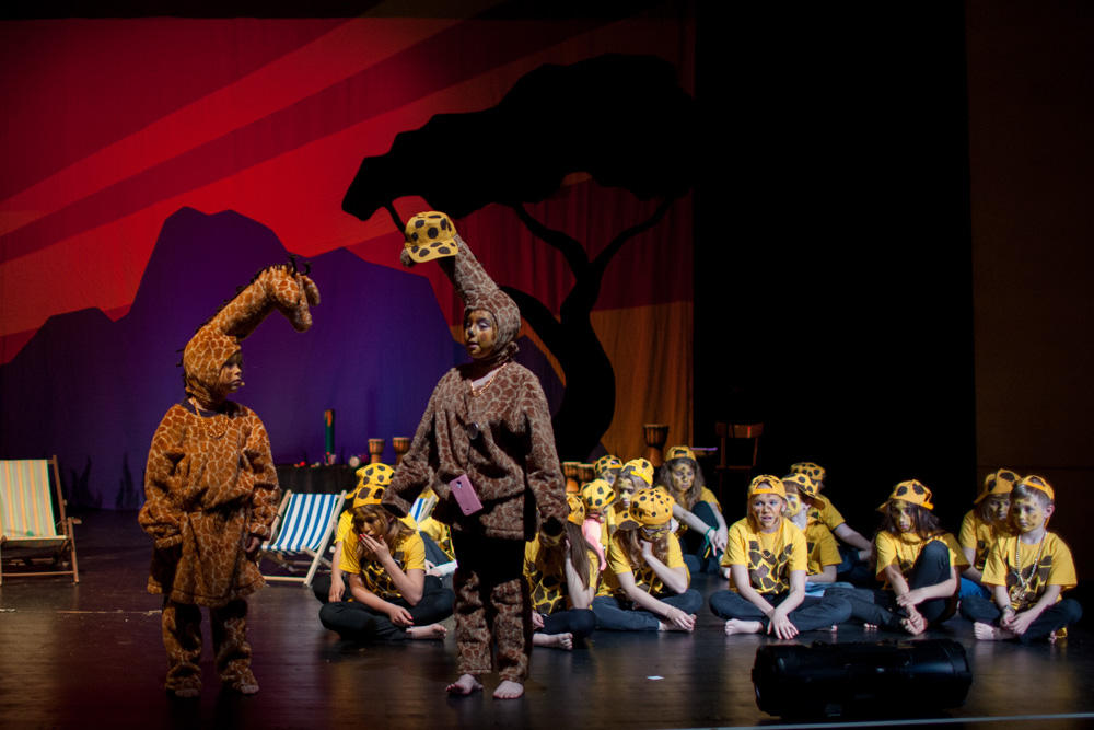 Giraffen, Zebras, Löwen und Erdmännchen spielen mit großen Einsatz unser Stück, bis sich schließlich nicht nur Rafi und Zea sondern auch alle anderen Tiere anfreunden.