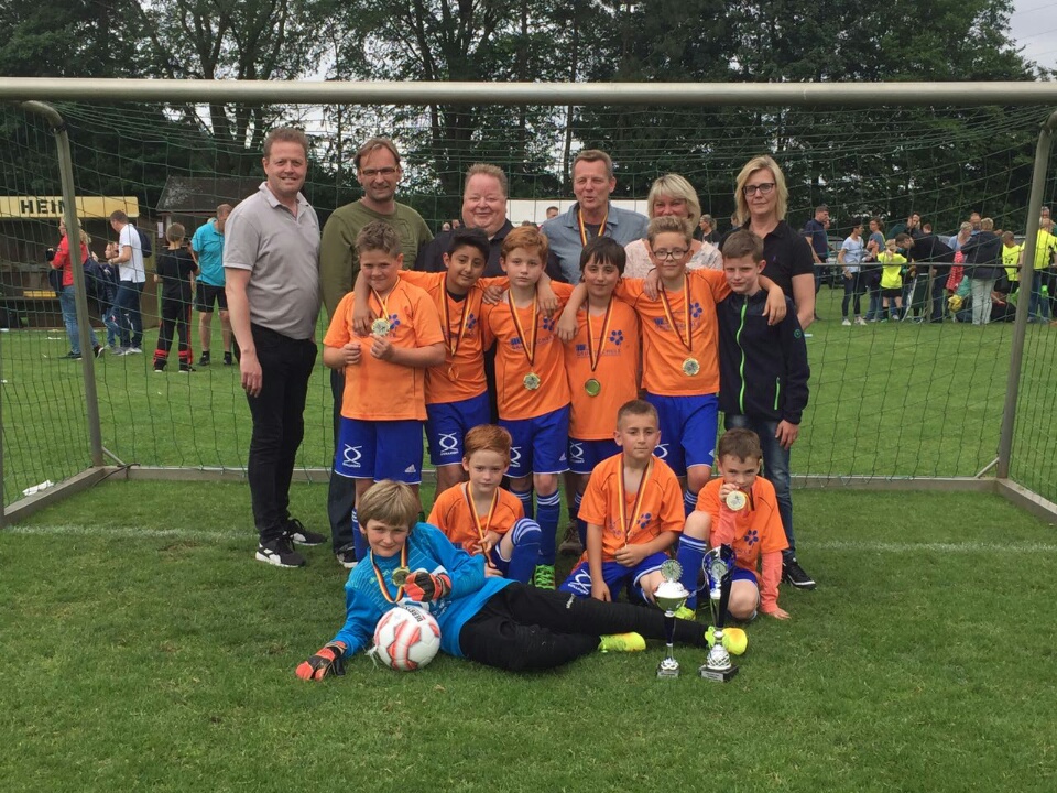 Heute, am 17. Juni 2017, fand wieder das Grundschulturnier der Grundschulen im Fußball auf dem Gelände des „SV Vorwärts Nordhorn“ statt. Die Mission „Titelverteidigung“ wurde fortgesetzt. Nach dem Gewinn des Hallenturniers im Januar war unser Ziel, auch hier und heute den Titel zu holen. Bestens vorbereitet durch unseren Trainer André Paul und unterstützt durch unseren Sportlehrer Heiner Hombrink gingen wir in unser erstes Spiel, was souverän gewonnen wurde. Schon jetzt war allen klar: „Hier sitzt heute etwas drin!“ Heute waren wir nicht zu schlagen und so erreichten wir nach 8 spannenden Spielen ohne Gegentor schließlich das Endspiel gegen das Team der Waldschule, was wir schließlich nach einem spannenden Spiel im Elfmeterschießen für uns entscheiden konnten.
