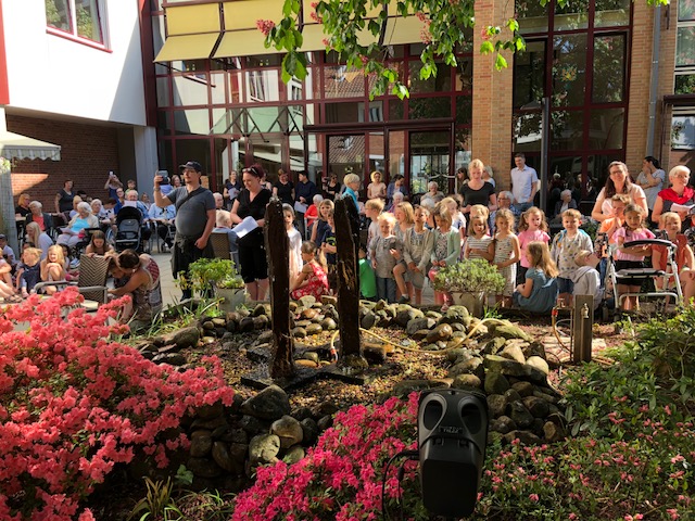 Wir wurden von unserem Chor angeleitet und haben sehr tolle Lieder gemeinsam gesungen. Von Klein bis Groß – alle waren mit dabei und umgeben von der Sonne und der schönen Frülingsathmosphäre.