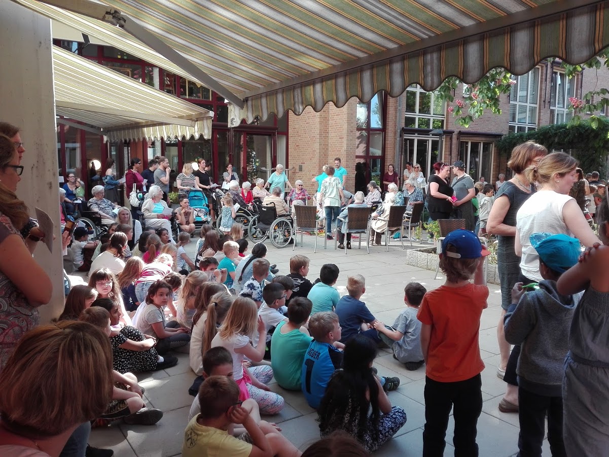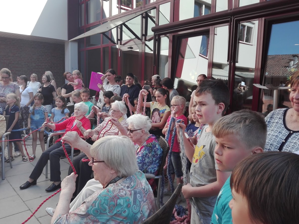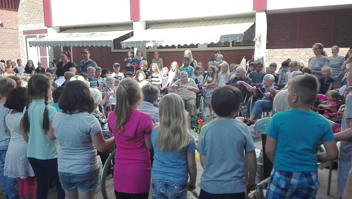 Doch nicht nur wir haben für das Frühlingssingen etwas beigetragen, sondern die Senioren hatten auch etwas vorbereitet. Sie haben uns ein Lied vorgesungen und dazu einen Tanz performt. Beim zweiten Lied durften einige Kinder mit den Senioren mit einem Seil mitmachen, welches hoch und runter geschwungen werden sollte.