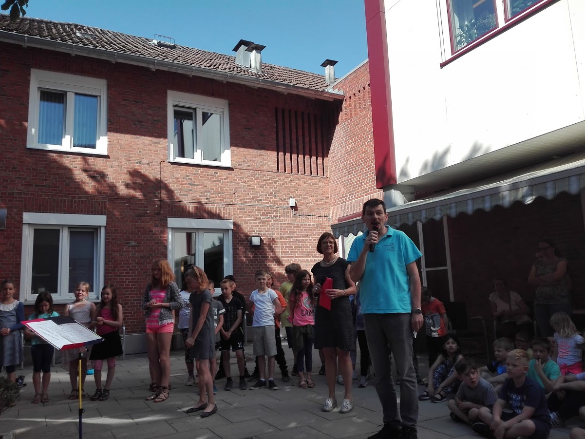 Zwischen dem ganzen Singen haben wir auch einen schönen zungenbrecherischen Text sehr gekonnt von Maleen vorgelesen bekommen. Maleen hatte in diesem Jahr die Nordhorner Leseregatta gewonnen. Das ist ein Lesewettbewerb unter allen Drittklässlerinnen der Stadt.