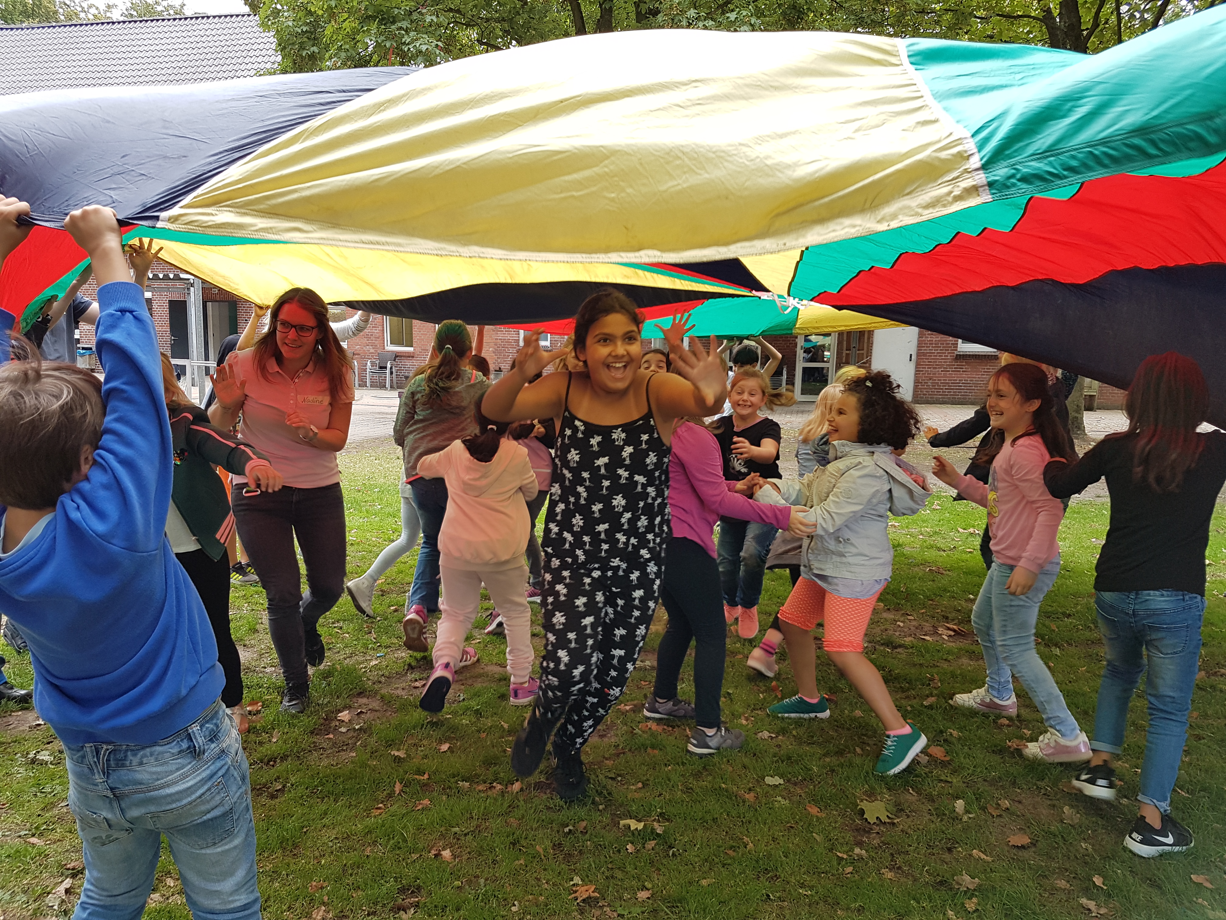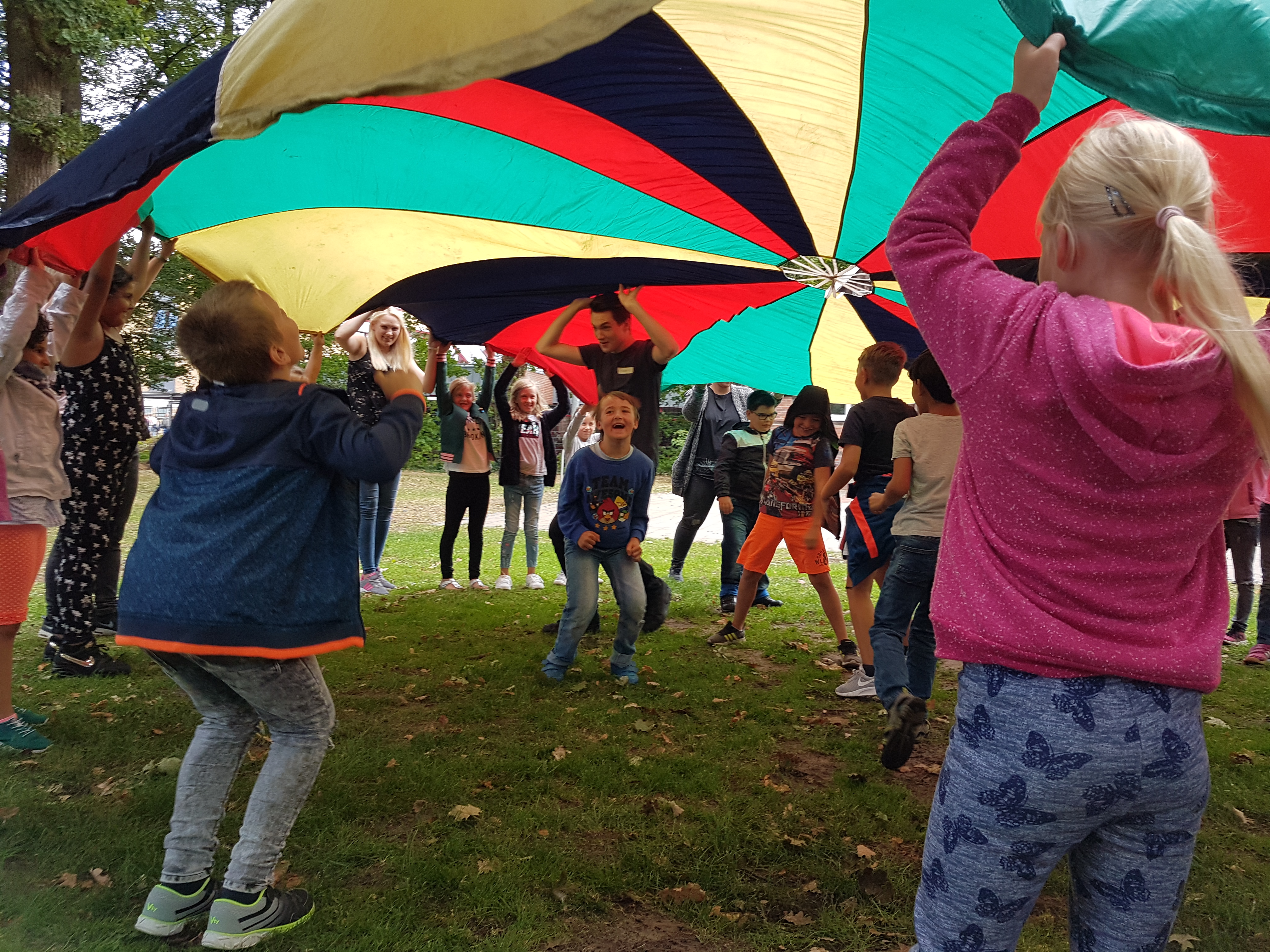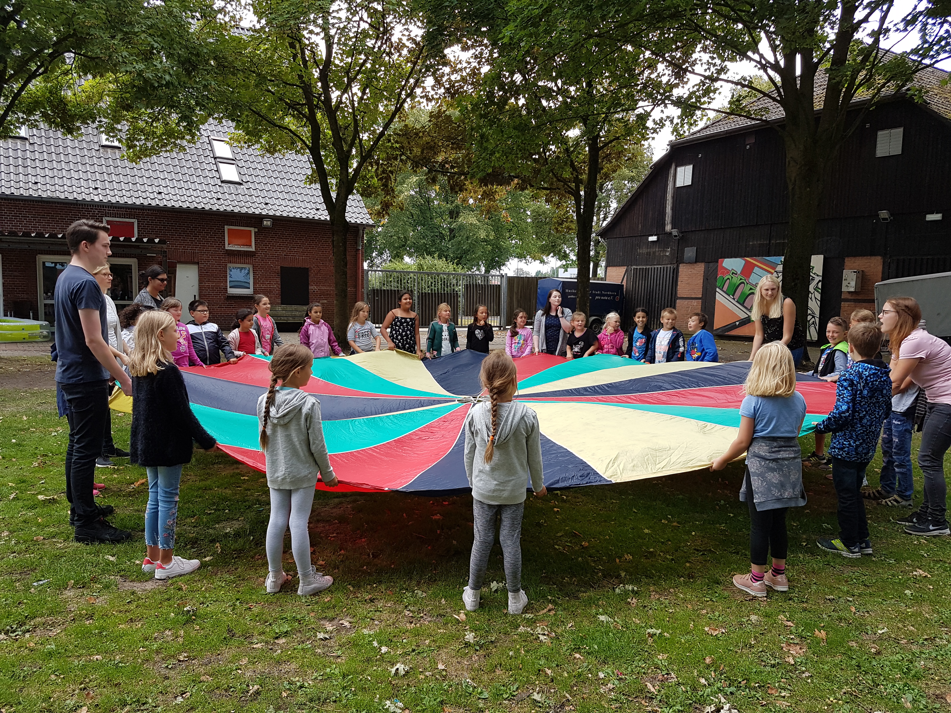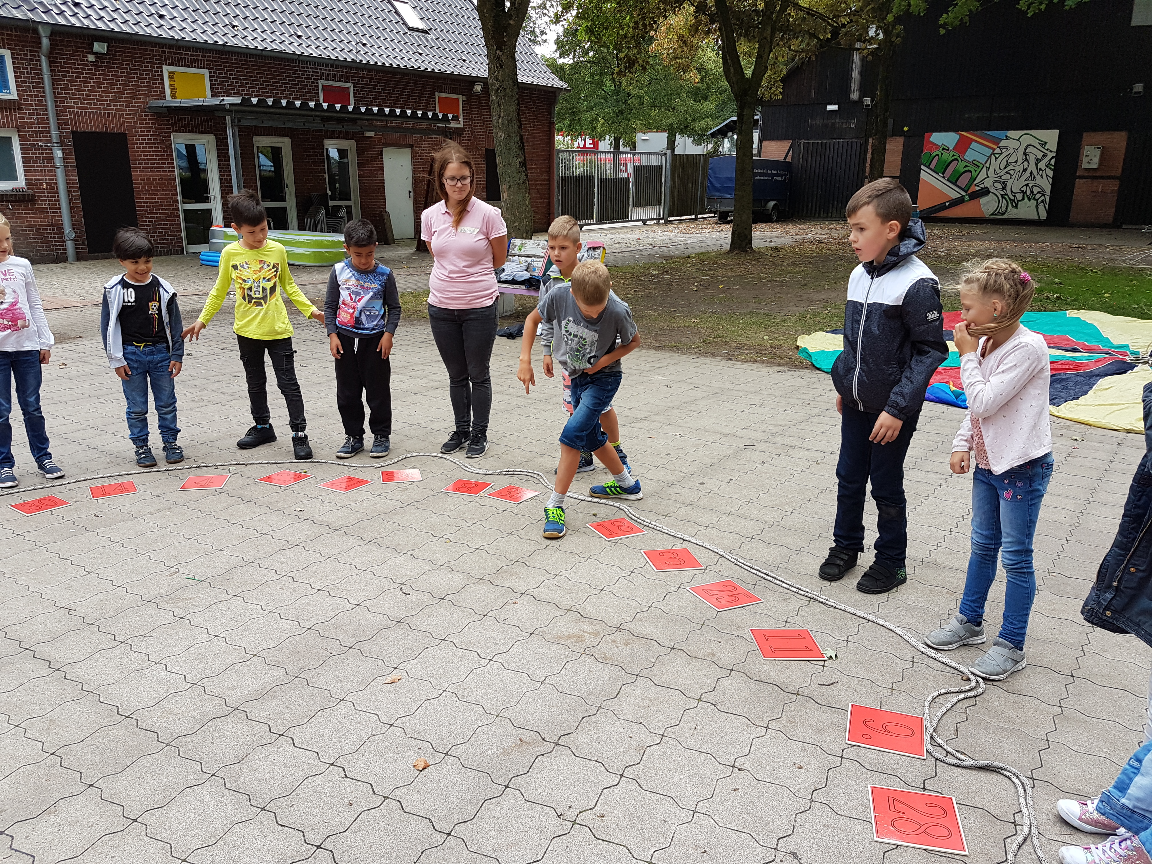 Für die Kinder, die gerade keinen Platz auf den Seilen hatten, gab es noch ein tolles Spielangebot mit einem Schwungtuch und einem „lebendigen Taschenrechner“.