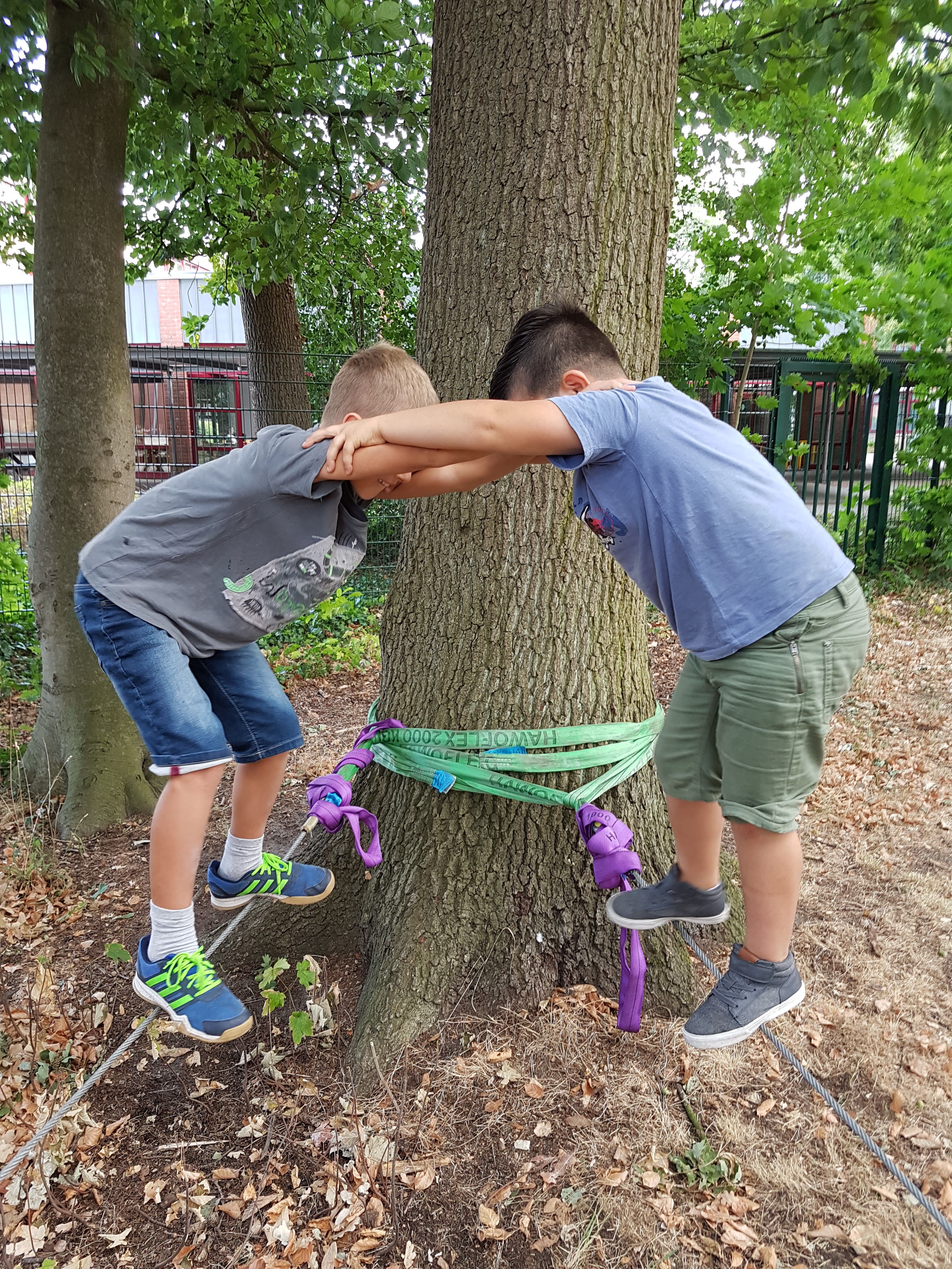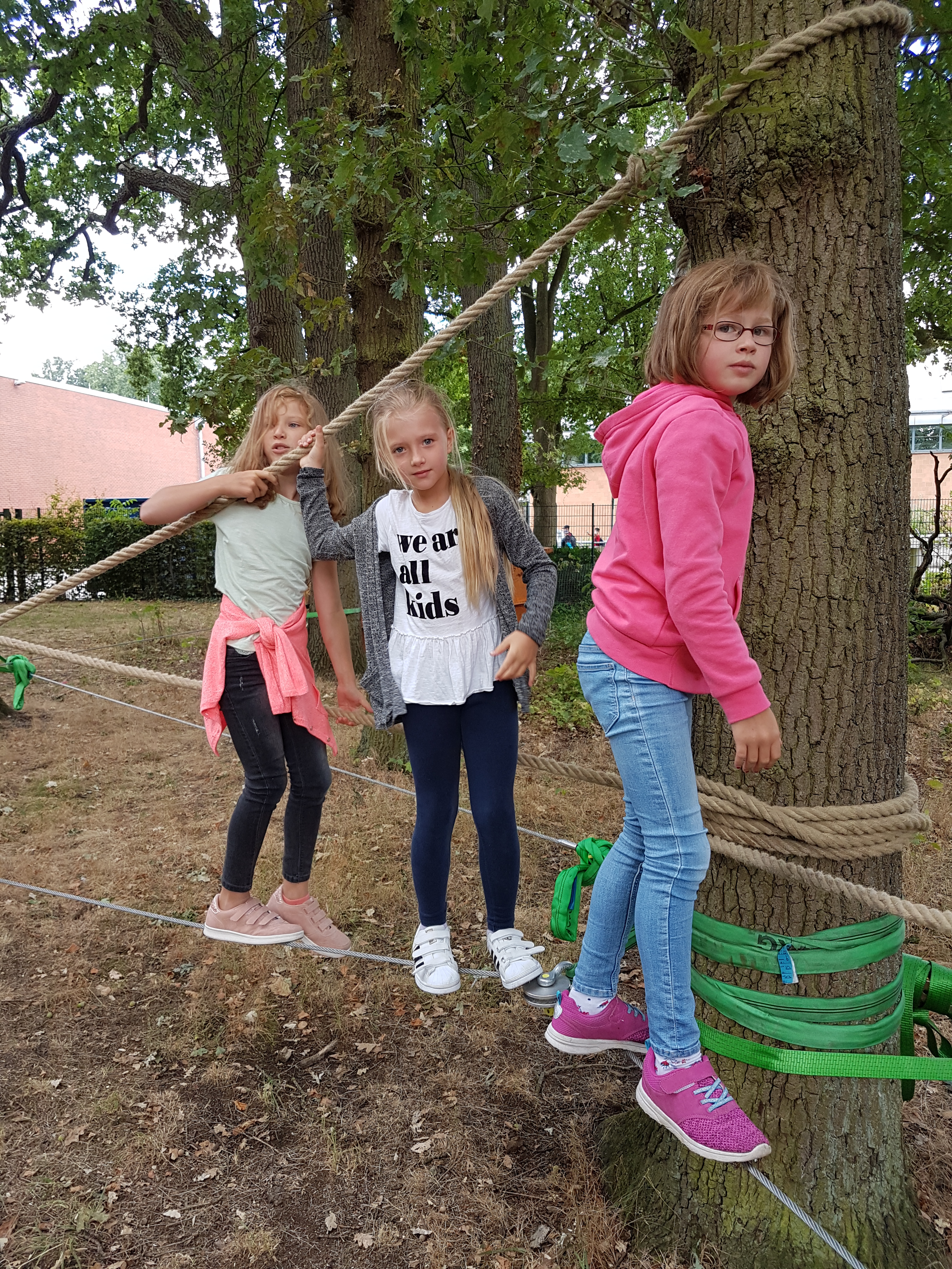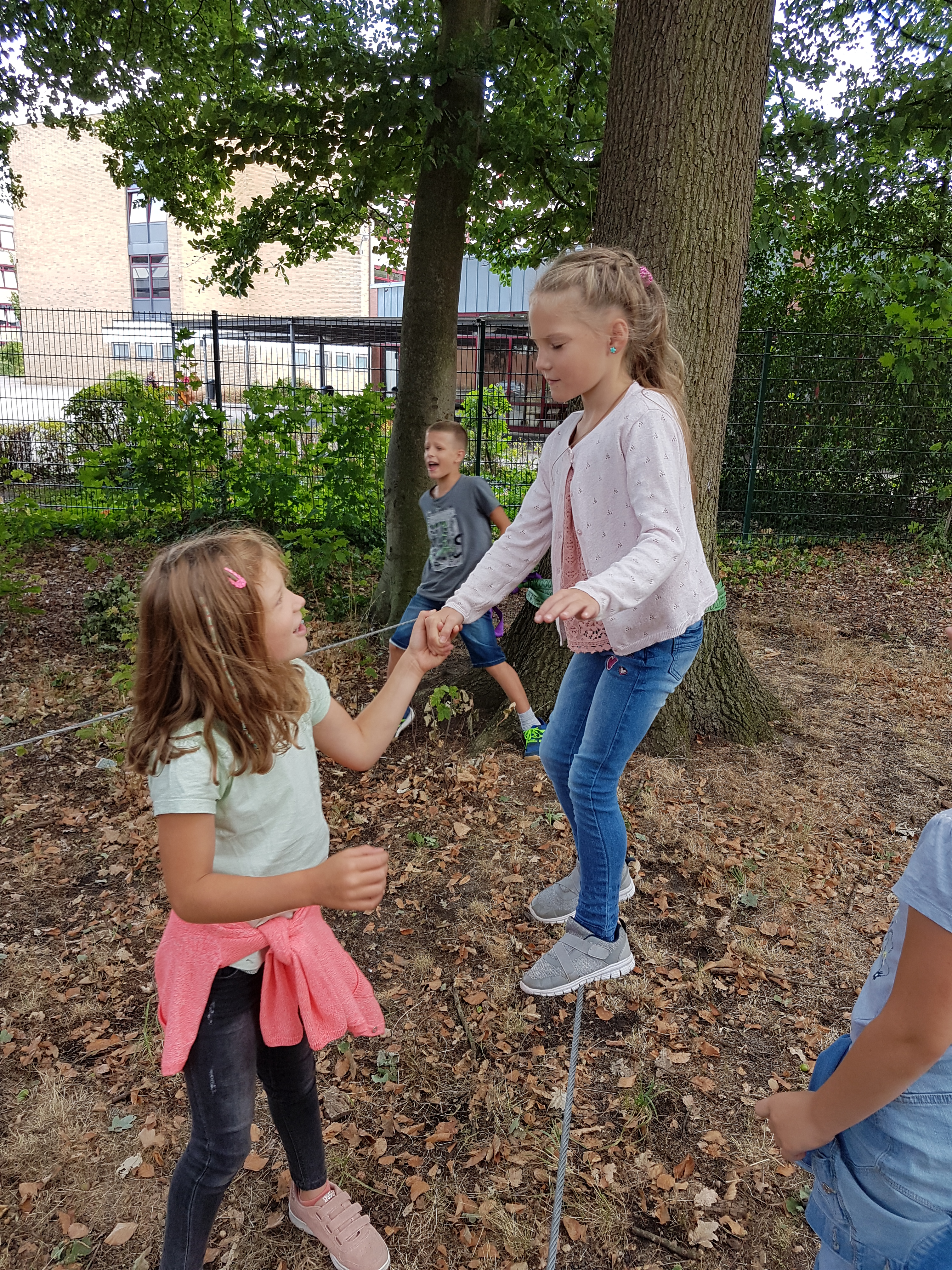 Am Montag, dem 13.8., durften unsere Drittklässlerinnen und Drittklässler einen besonderen Ausflug machen. Gemeinsam sind wir zum Jugendzentrum gelaufen. Dort war ein Niedrigseilgarten aufgebaut, auf dem alle Kinder balancieren durften.