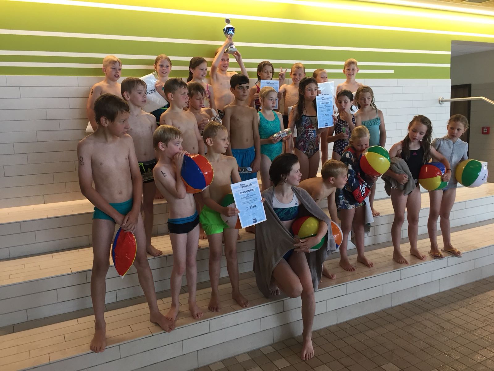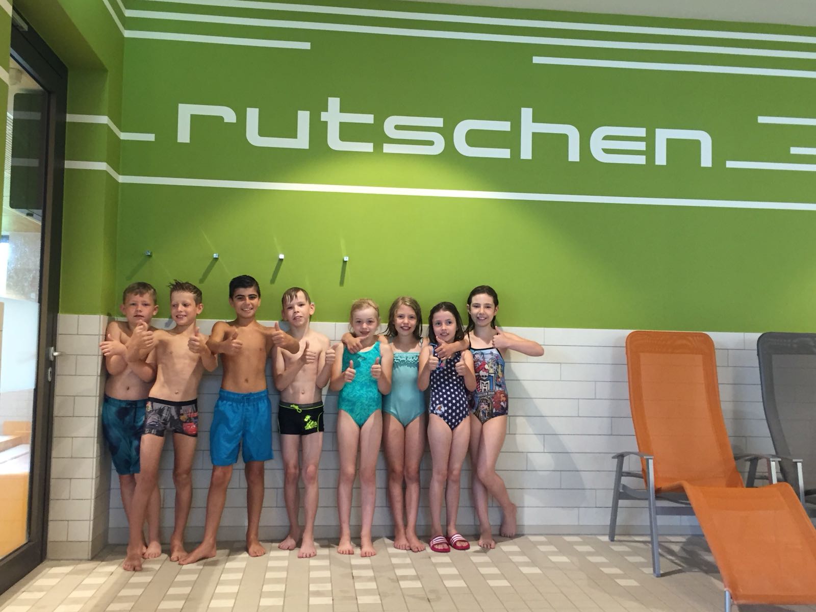 Am 20. Juni 2018 konnten 8 Kinder (2 aus jedem Jahrgang) an den ersten Hallenbad-Rutschmeisterschaft erfolgreich teilnehmen. Es war ein äußerst sportlich lustiger Vormittag im warmen „Naß“! Es wurde tüchtig in drei Durchgängen um die Wette gerutscht. Für unsere Schule gab es als Preisgeld einen Gutschein über 100,- Euro sowie Taucherbrillen für die Kids.
