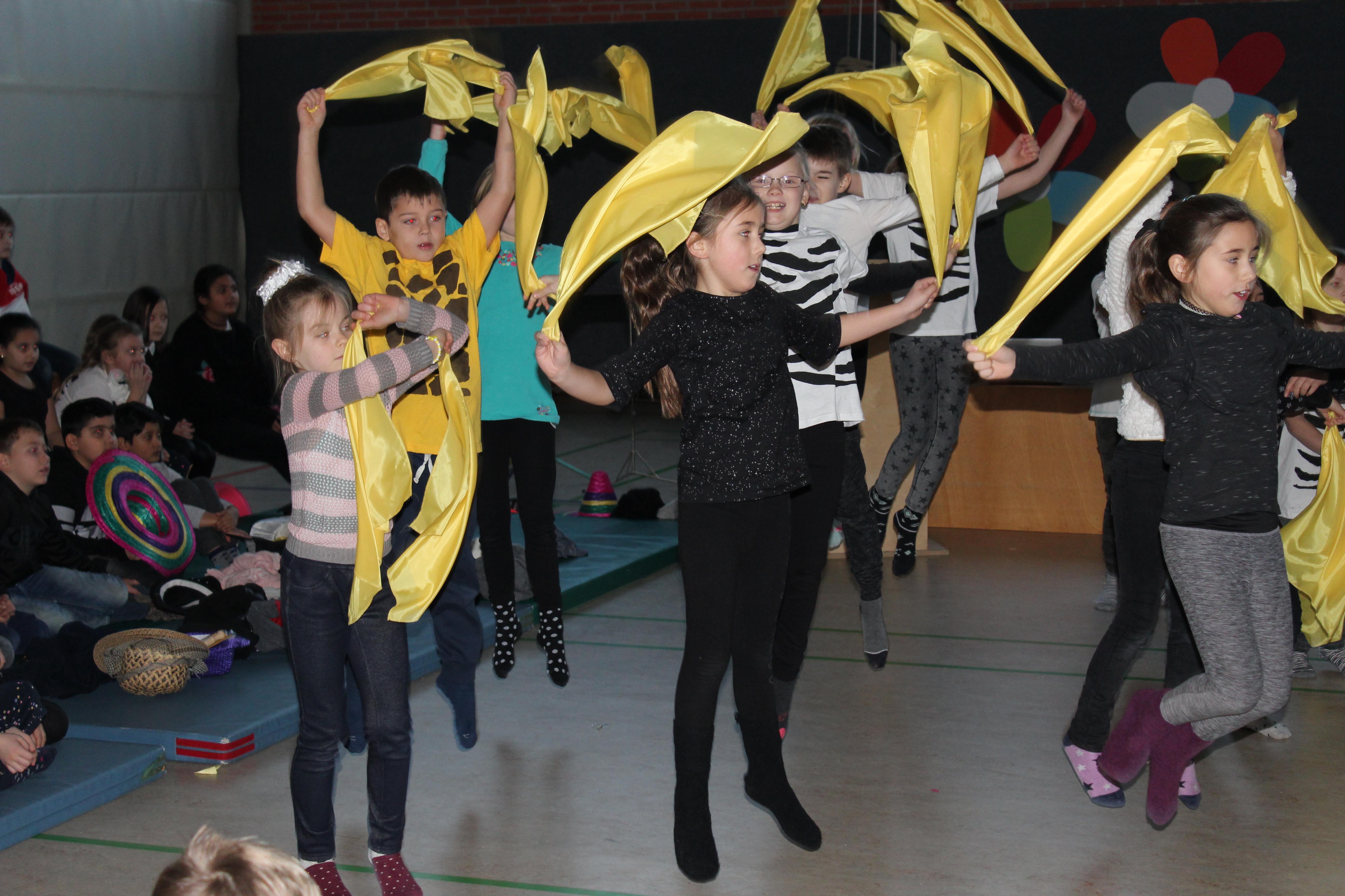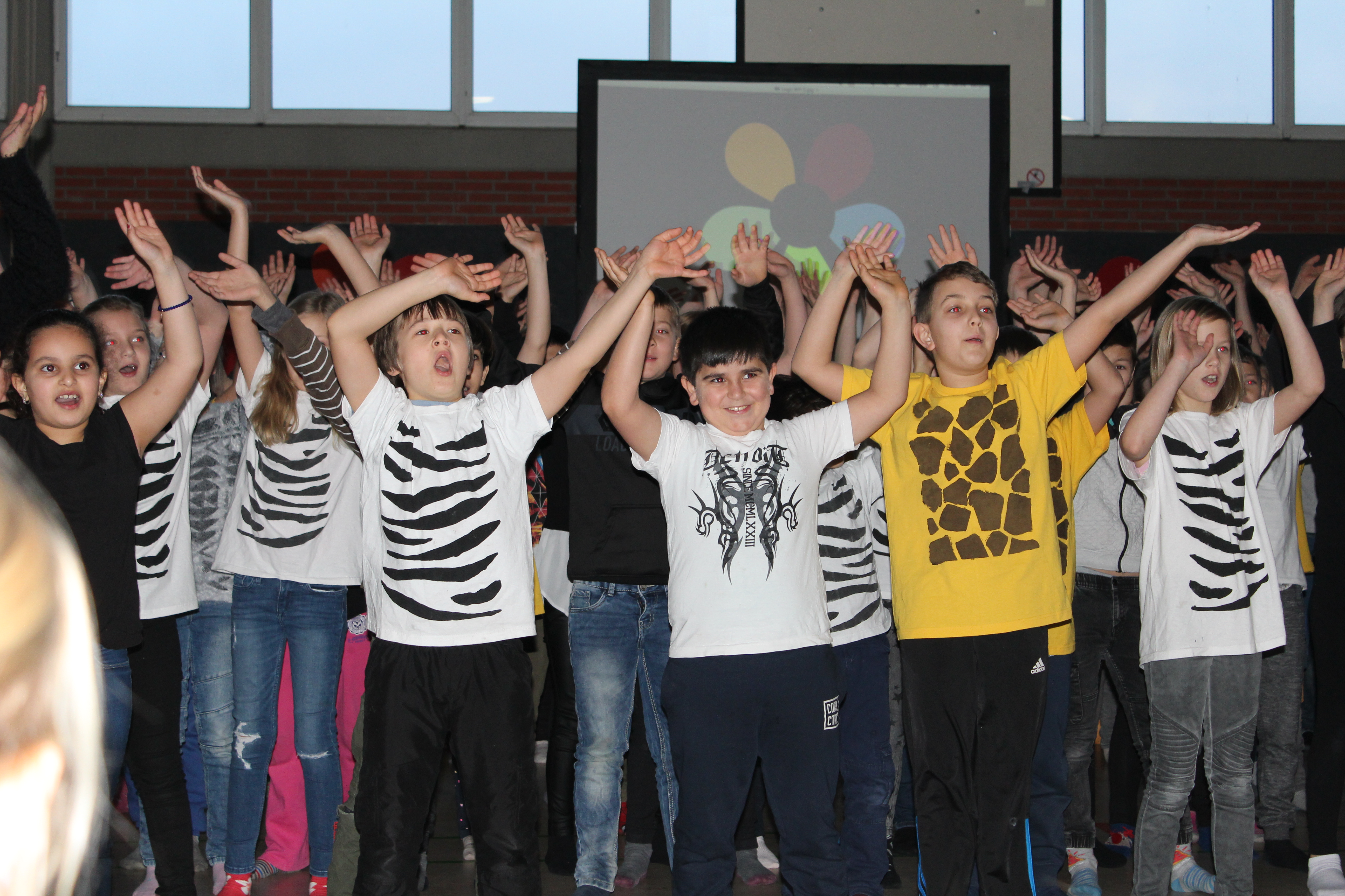 An zwei Punkten im Programm tanzten die Drittklässler, die auf Niederländisch in Sport und Musik unterricht werden, „de zon op“.