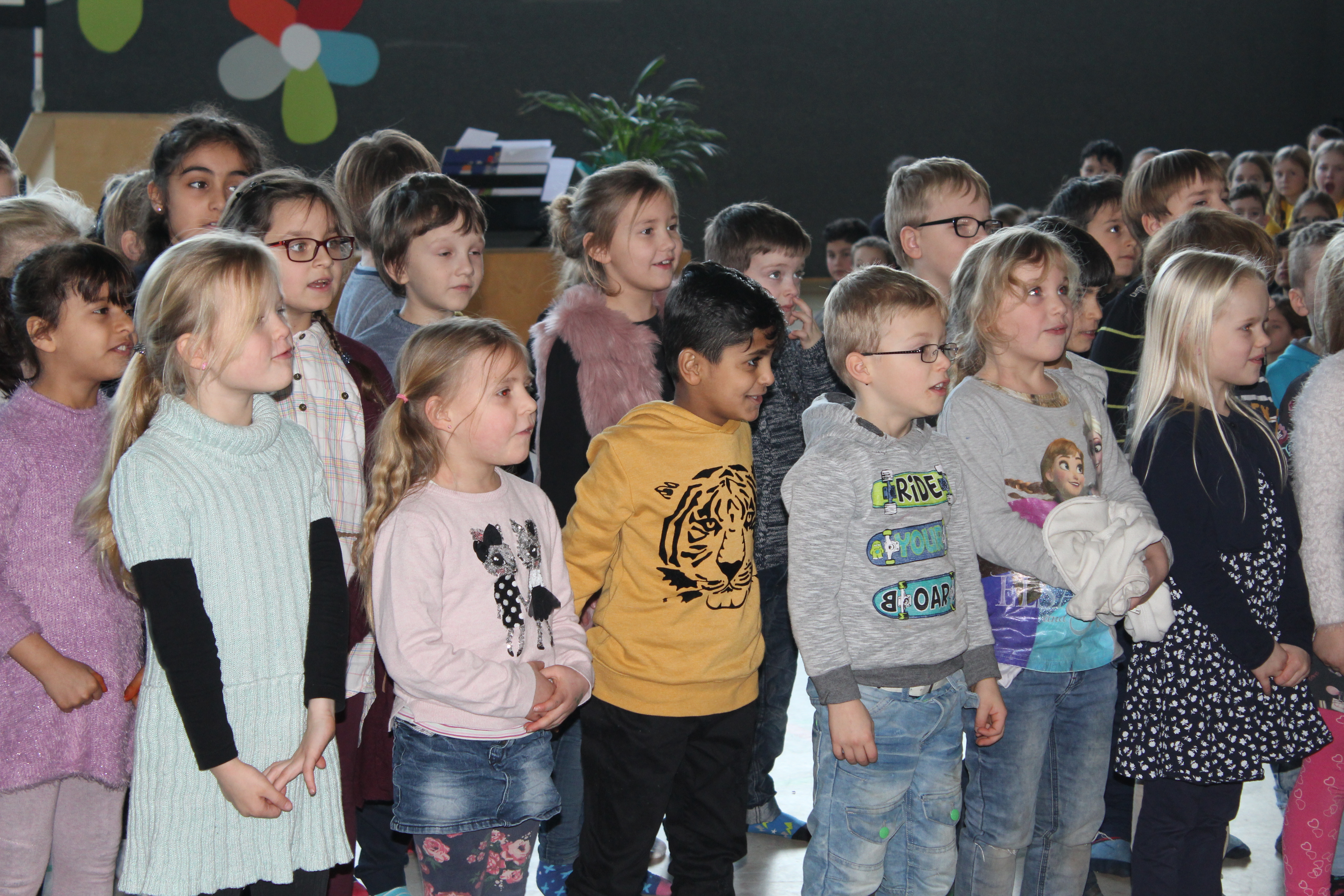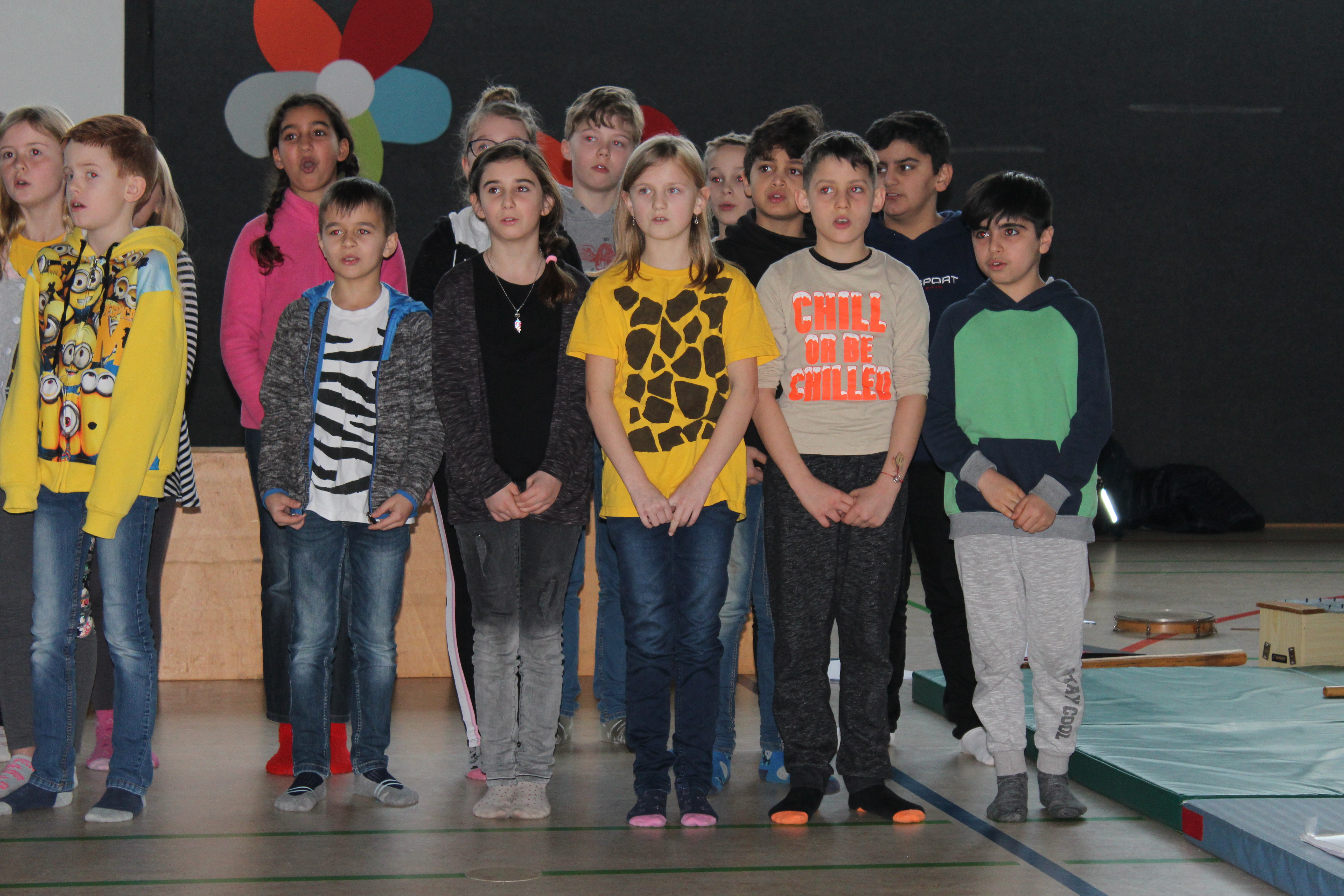 Eine besonderes Talent zeigten die Viertklässler mit einem mehrstimmigen Gesang. Außerdem hatten sie eine witzige Geräusche-Kollage über das Leben in der Grundschule Blumensiedlung zusammengestellt.