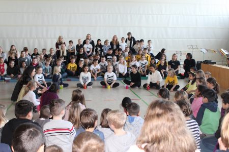 Die Tanz-AG begeisterte mit ihrem Cup-Song und die Blockflöten-AG spielte die Europa-Hymne „Freude schöner Götterfunken“.
