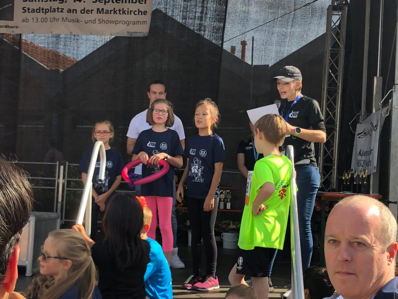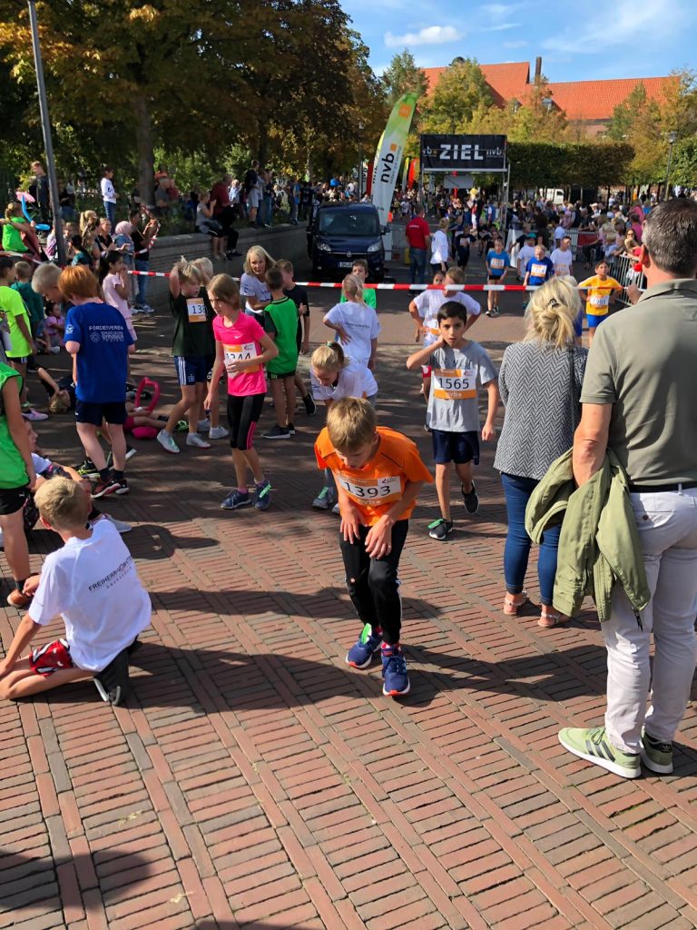 Bei strahlendem Sonnenschein und tosendem Applaus starteten die Kleinsten aus der Altersklasse U10 über einen Kilometer. Die schnellste Läuferin dieser Gruppe war Milea Vennes, Platz 5 (4:42); der schnellste Läufer unserer Schule war Henrik Wanink, Platz 28 (4:47).