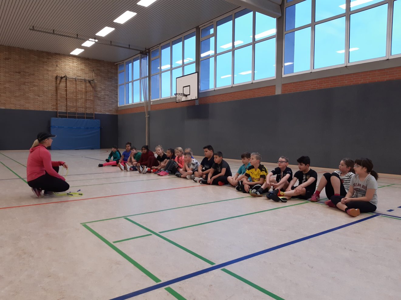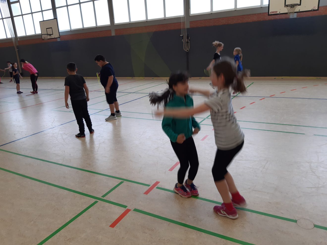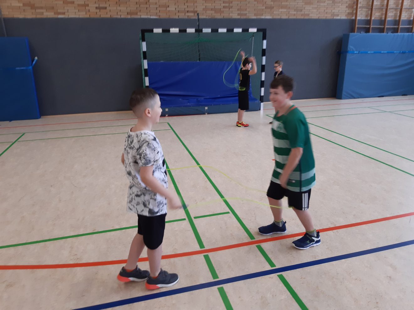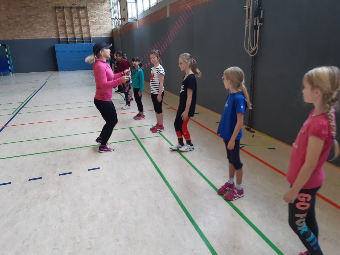 Durch Losentscheid hatte in diesem Jahr die Klasse 3b die Chance, an dem kostenfreien zweistündigen Basis-Kurs das sportliche Seilspringen vermittelt zu bekommen. Der durch Frau Schultjan angeleitete Workshop enthielt zahlreiche Sprungvariationen, die allein, zu zweit oder in der Gruppe durchgeführt werden konnten.
