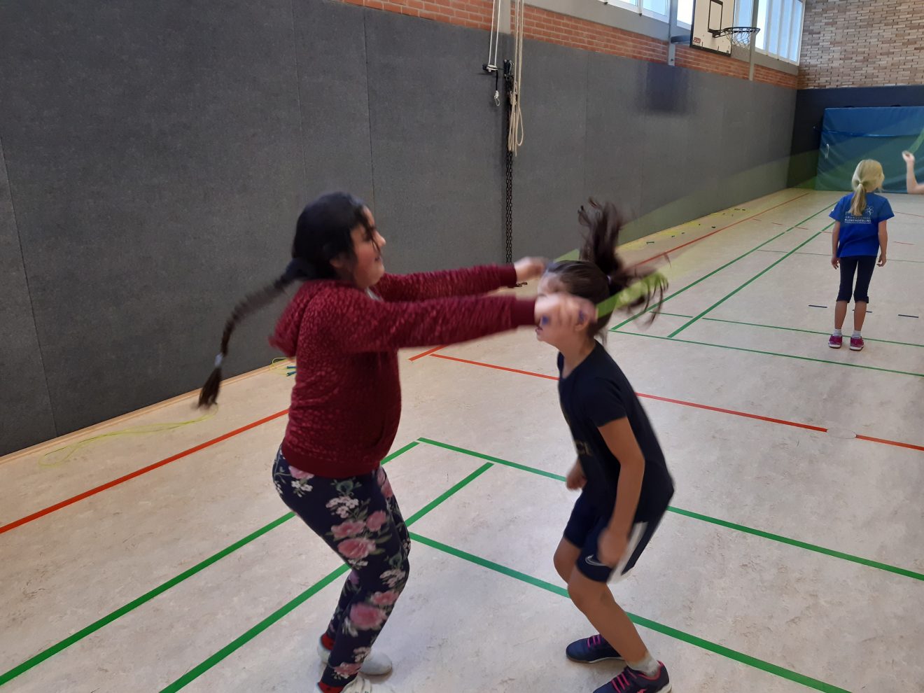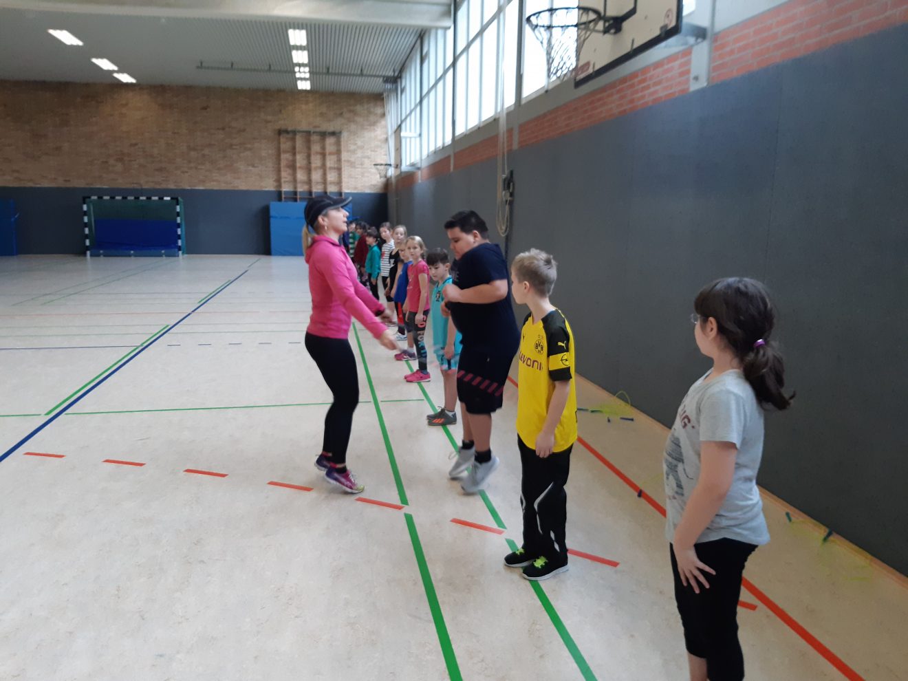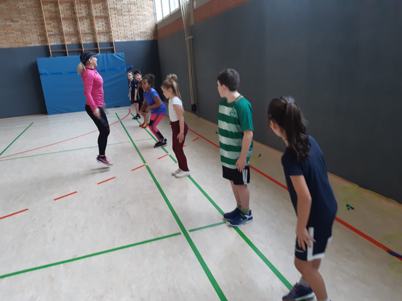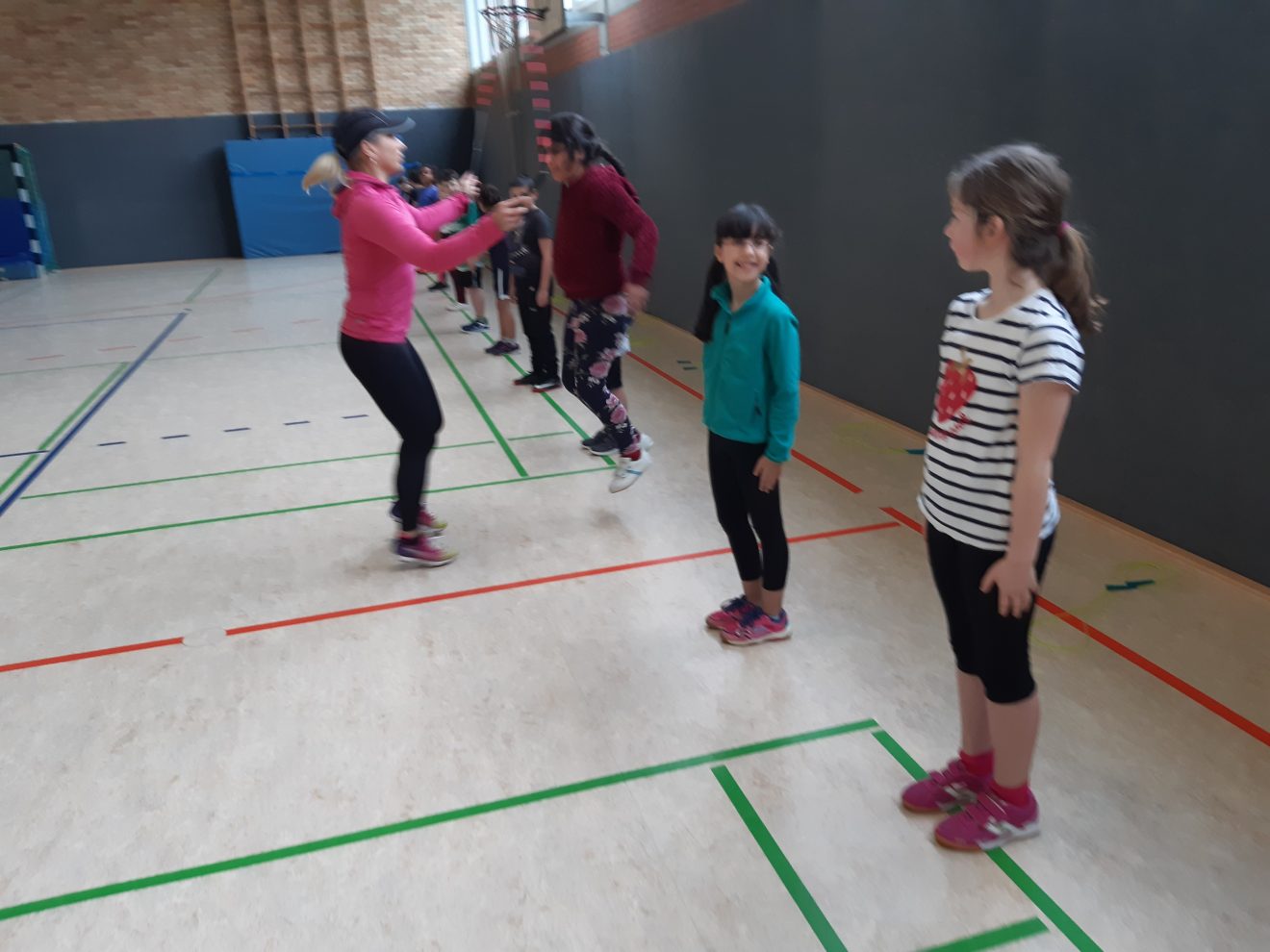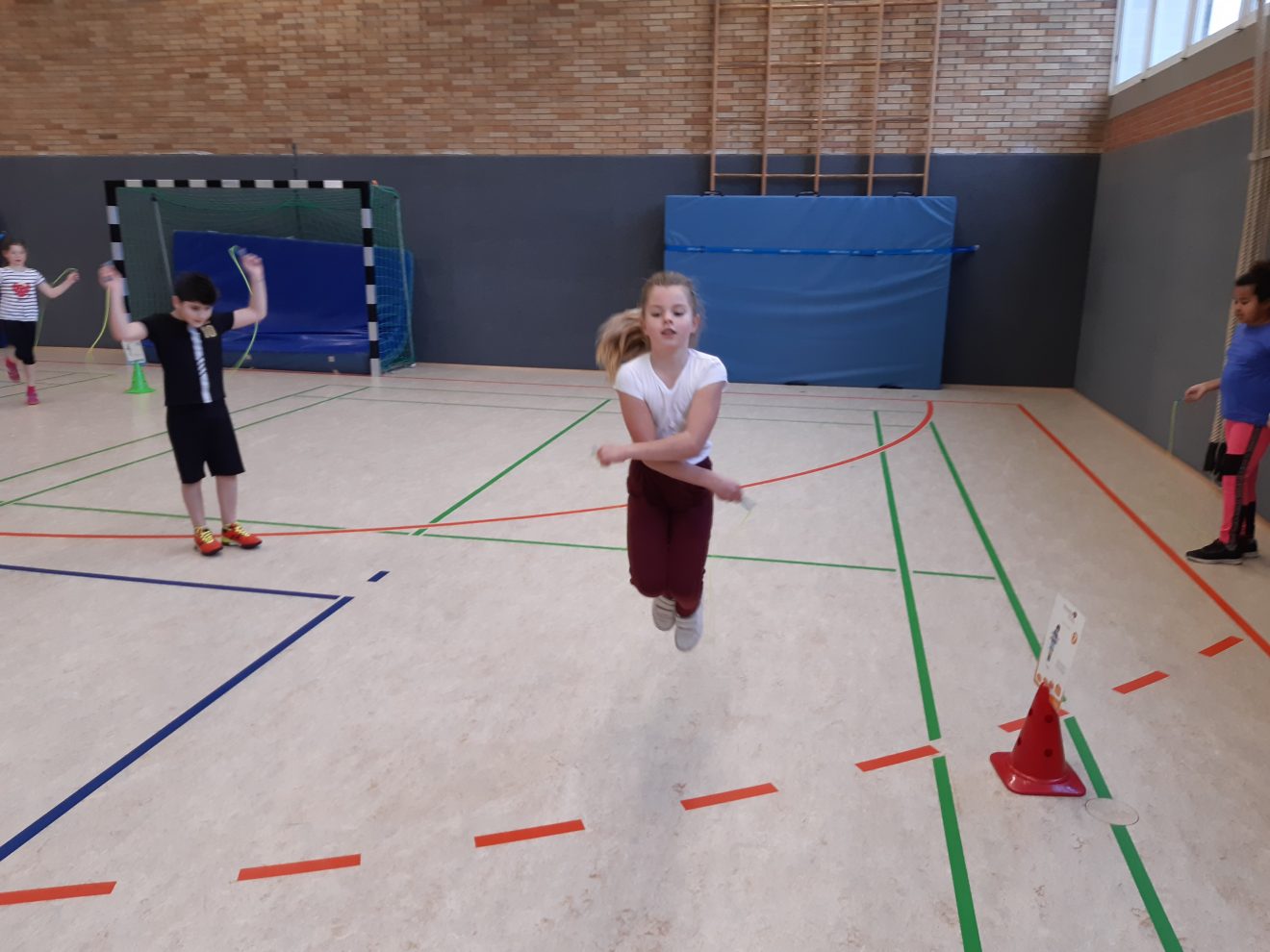 Durch Losentscheid hatte in diesem Jahr die Klasse 3b die Chance, an dem kostenfreien zweistündigen Basis-Kurs das sportliche Seilspringen vermittelt zu bekommen. Der durch Frau Schultjan angeleitete Workshop enthielt zahlreiche Sprungvariationen, die allein, zu zweit oder in der Gruppe durchgeführt werden konnten.