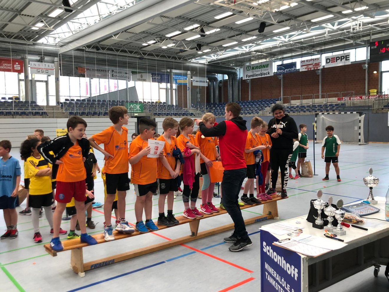 Zum ersten Mal konnte unsere Schule ein Team für das Grundschul-Handballturnier der Grafschaft Bentheim zusammenstellen. Mit dabei waren hoch motivierte Jungen und Mädchen aus den Jahrgangsstufen 3 und 4, die von den beiden Lehrerinnen ihrer Handball-AG, Frau Bäcker und Frau Thiel, vorbereitet und begleitet wurden.