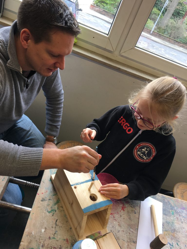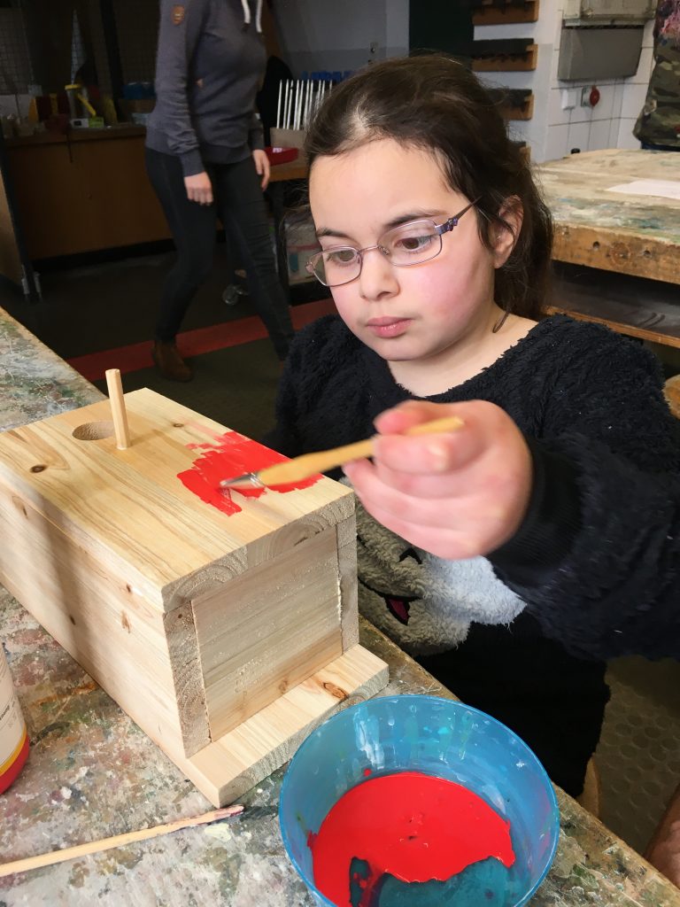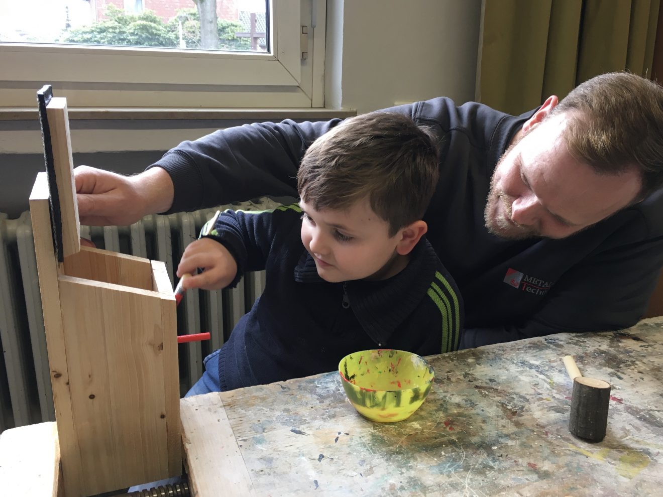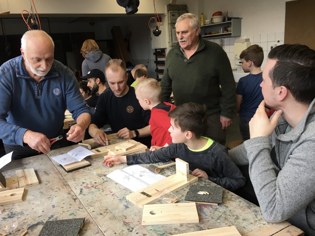 Am 28. Februar 2020 haben 12 Kinder aus unseren 3. Klassen gemeinsam mit ihren Vätern oder Großvätern an unserem Nistkasten-Projekt teilgenommen. Im Werkraum wurde gemeinsam gebaut, gehämmert und gemalt. Schulsozialarbeiterin Daniela Wolf konnte die Jäger der Jägerschaft vom Hegering 3 aus Nordhorn für dieses Projekt gewinnen. Drei Jägerinnen und Jäger waren an dem Nachmittag ehrenamtlich dabei und unterstützten die Kinder, Väter und Großväter tatkräftig. Jäger Hans Kramer gab außerdem viele interessante Hintergrundinformationen. Er erklärte zum Beispiel, in welche Himmelsrichtung die Nistkästen ausgerichtet werden sollten oder warum der Eingang zu den Nistkästen so klein ist. Auch unser ehemaliger Schulhausmeister nahm gemeinsam mit seiner Enkeltochter an dem Projekt teil. Beim Aufhängen der Nistkästen packte er fleißig mit an. Zum Schluss konnten 12 tolle Nistkästen für Meisen auf dem Schulhof und rund um unsere Schule aufgehängt werden. Diese Nistkästen sehen nicht nur schön aus, sondern laden hoffentlich im Frühling viele Meisen dazu ein, rund um unsere Schule zu nisten. Vielleicht tragen diese dann einen Teil dazu bei, dass es weniger Eichenprozessionsspinner gibt, indem sie zahlreiche Larven auffressen. Ein herzliches Dankeschön an die Jägerschaft vom Hegering 3 für die tatkräftige Unterstützung bei diesem Projekt und an die Abteilung Jugendarbeit der Stadt Nordhorn für die finanzielle Unterstützung!