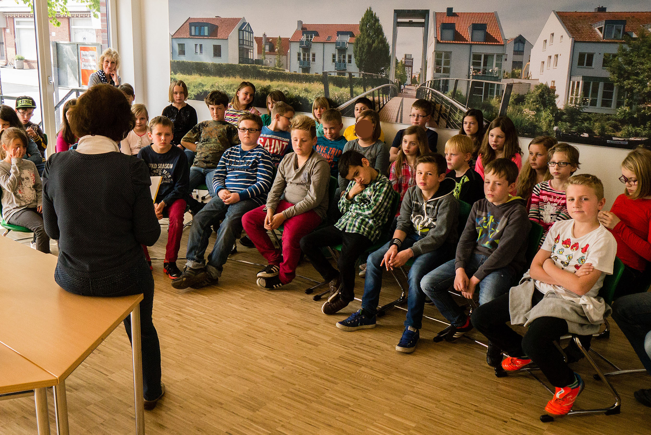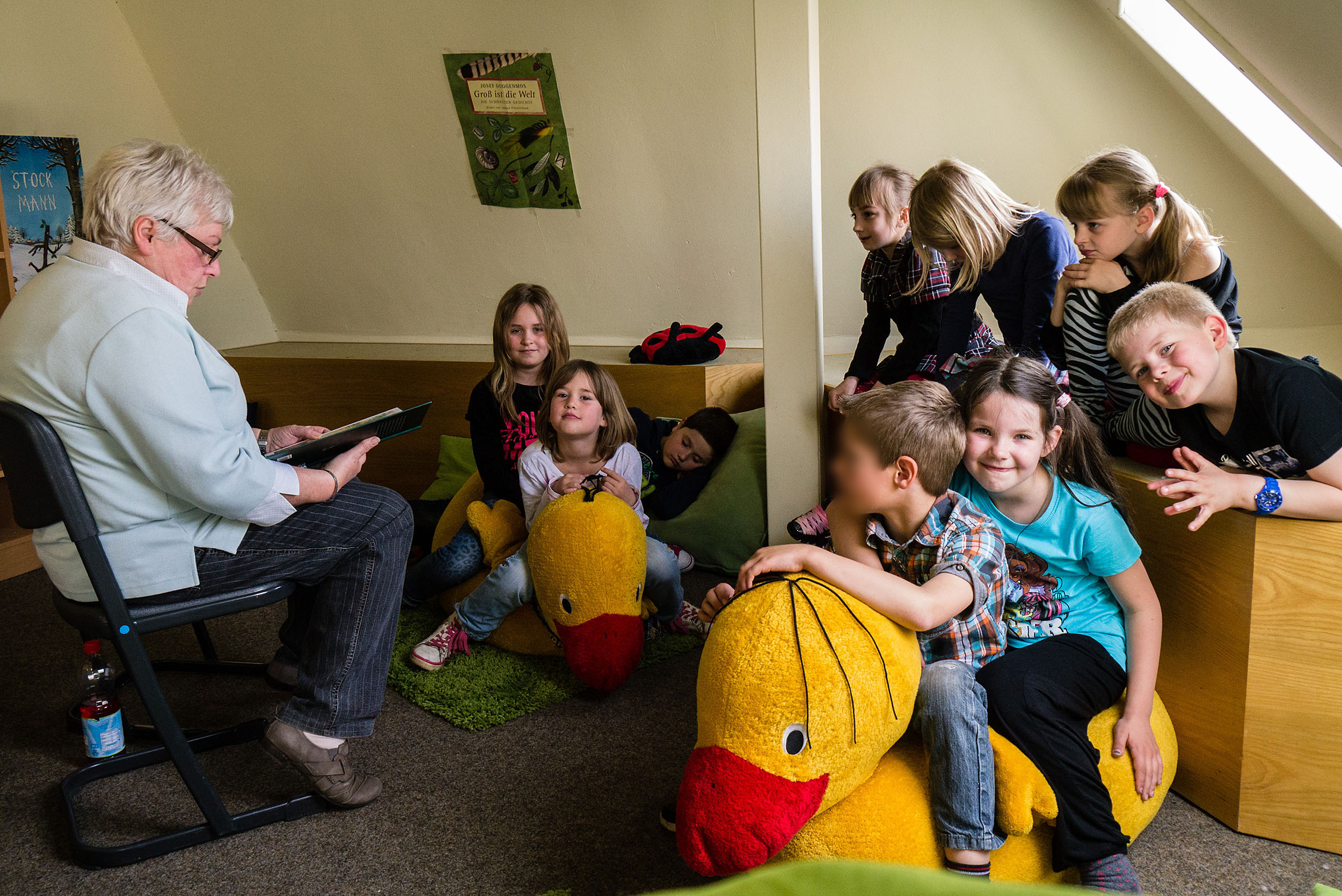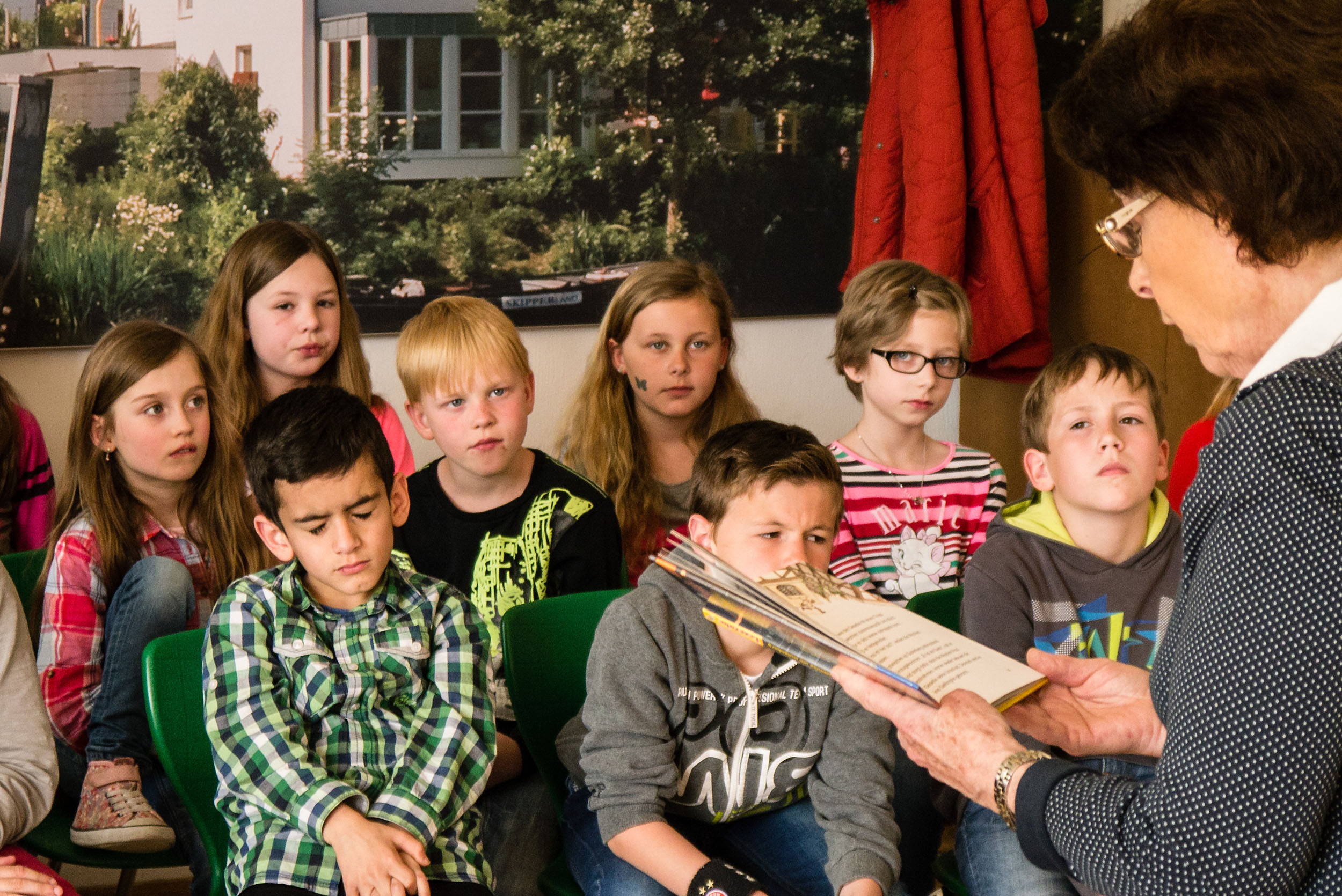 Heute durften alle Kinder der zweiten bis vierten Klassen einer Geschichte lauschen.